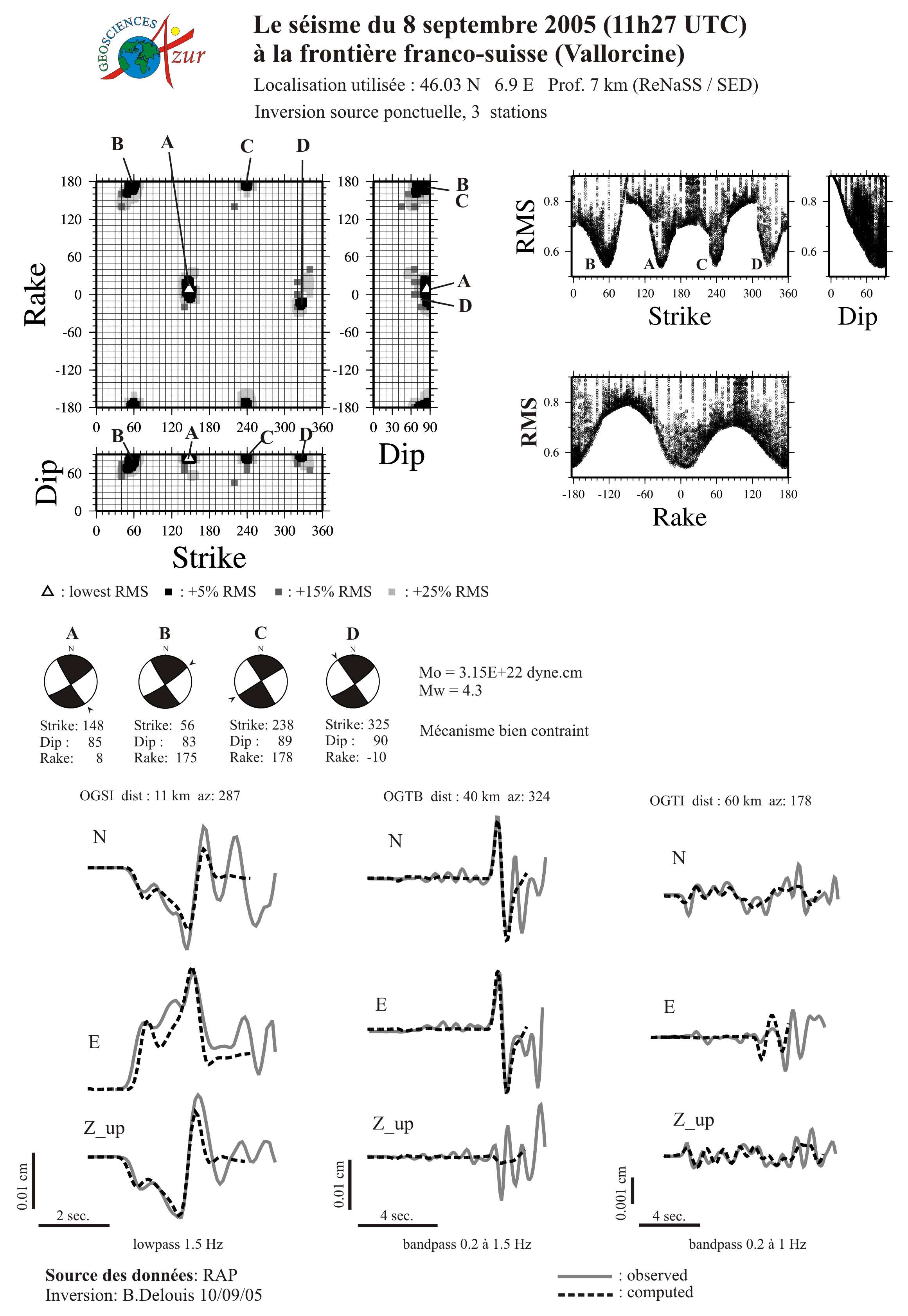 Inversion of focal mechanism of ML 5.1 in Martigny (France/Swiss border) 08/09/2005 (JPG)