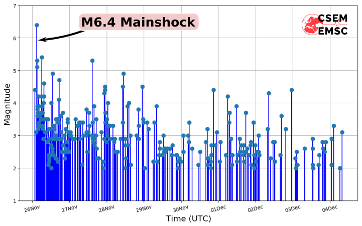 More than 31 earthquakes has been recorded in 10 hours and the majority of them has been felt by the population. This sequence is a reminiscent of the one in September where an M5.6 earthquake hit the same region on 2019-09-21 14:04:27 UTC (info) followed by more than 70 aftershocks.